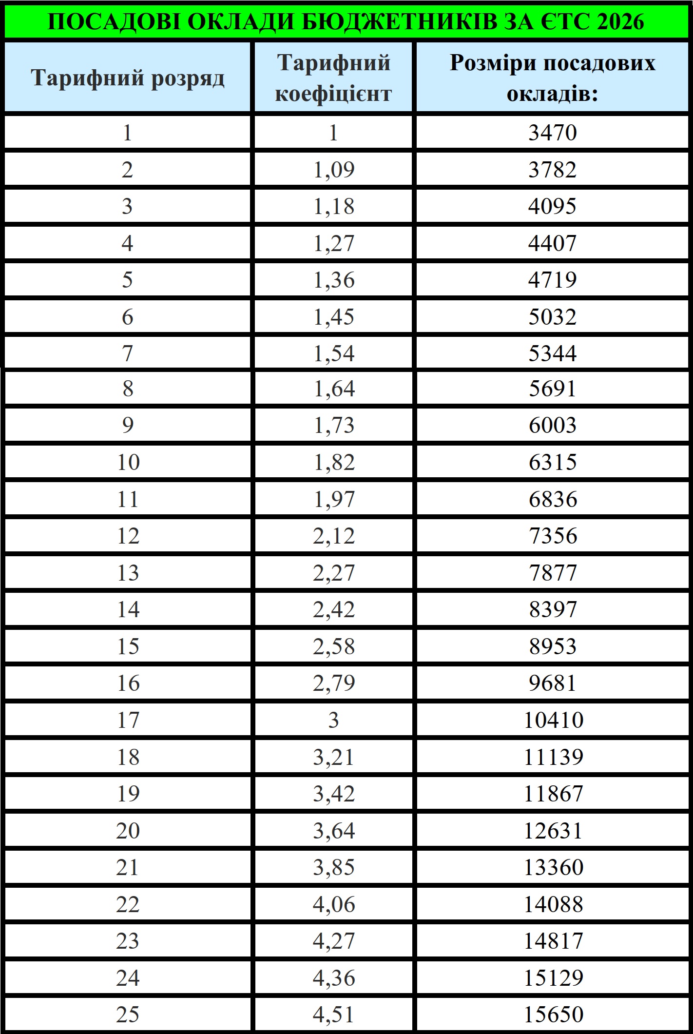 - підвищено оклад за Єдиною тарифною сіткою для першого тарифного розряду до 3470 грн;